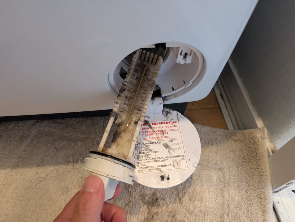 乾燥フィルターほど頻繁ではないですが、ここも重要です。 洗濯水から出たゴミや髪の毛が、ヘドロ状になって溜まる場所です。