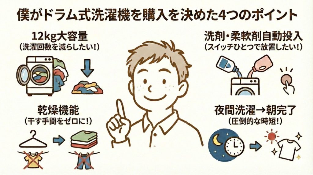 僕がドラム式洗濯機を選んだポイントが以下の4点