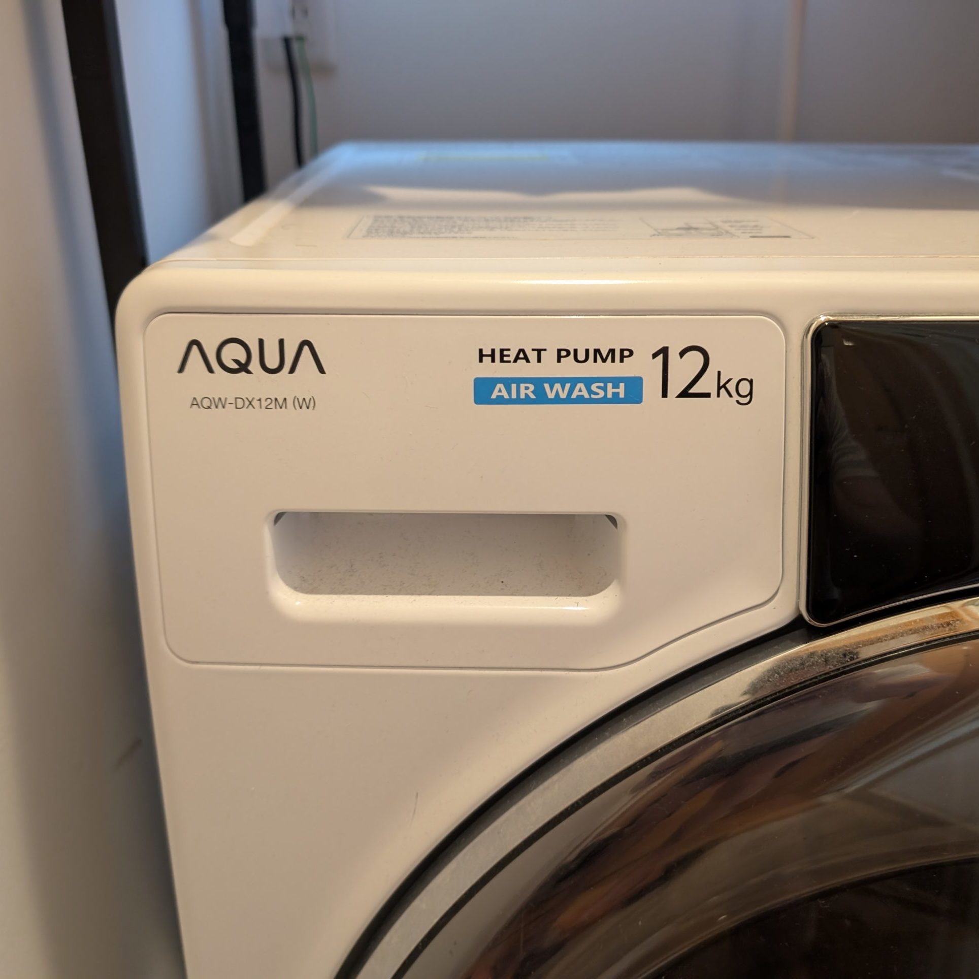 ちなみに我が家のドラム式洗濯機はAQUAの12kgまで対応のもの。乾燥は6kgまでが目安なので、4人家族で洗濯物を溜めちゃうとこれでも1回で全部乾かすのは難しいことも。